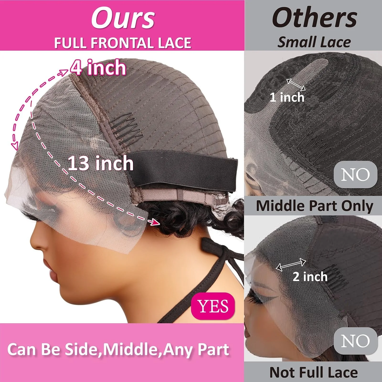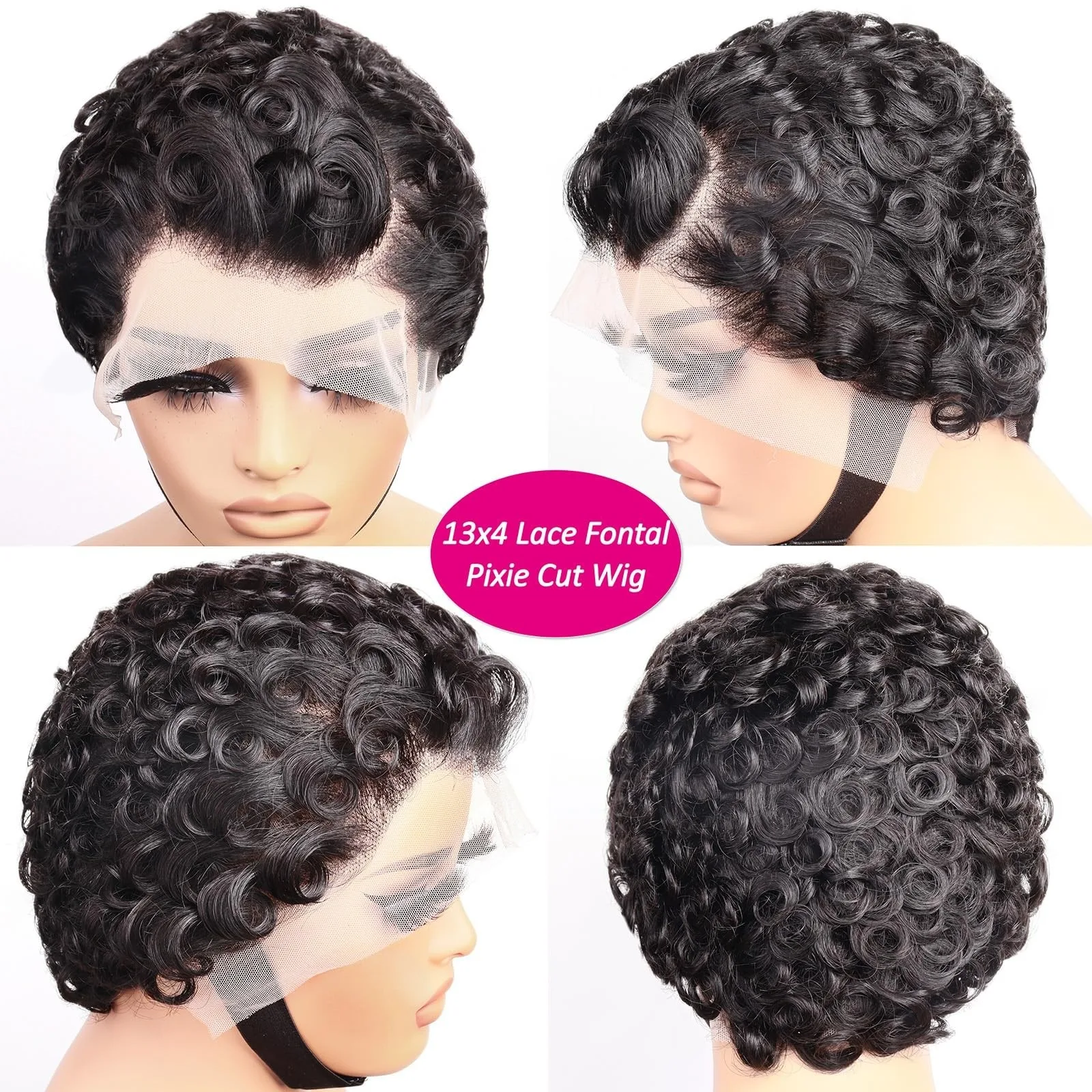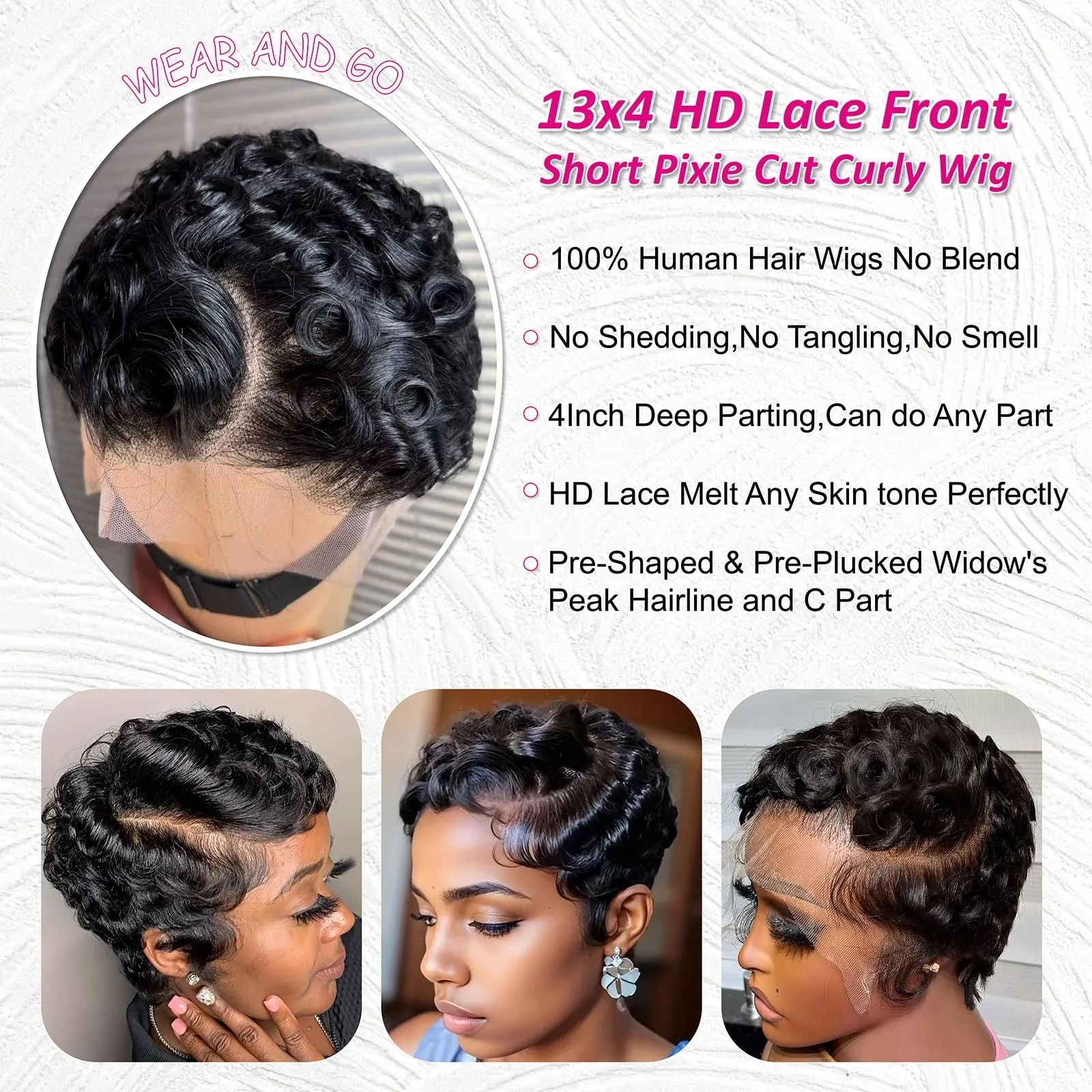 • Brazilian Remy Deep Wave Pixie Cut Wig 13x4 Lace Front Pre Plucked Hairline 100% Human Hair Wig For Black Women Daily Wear
