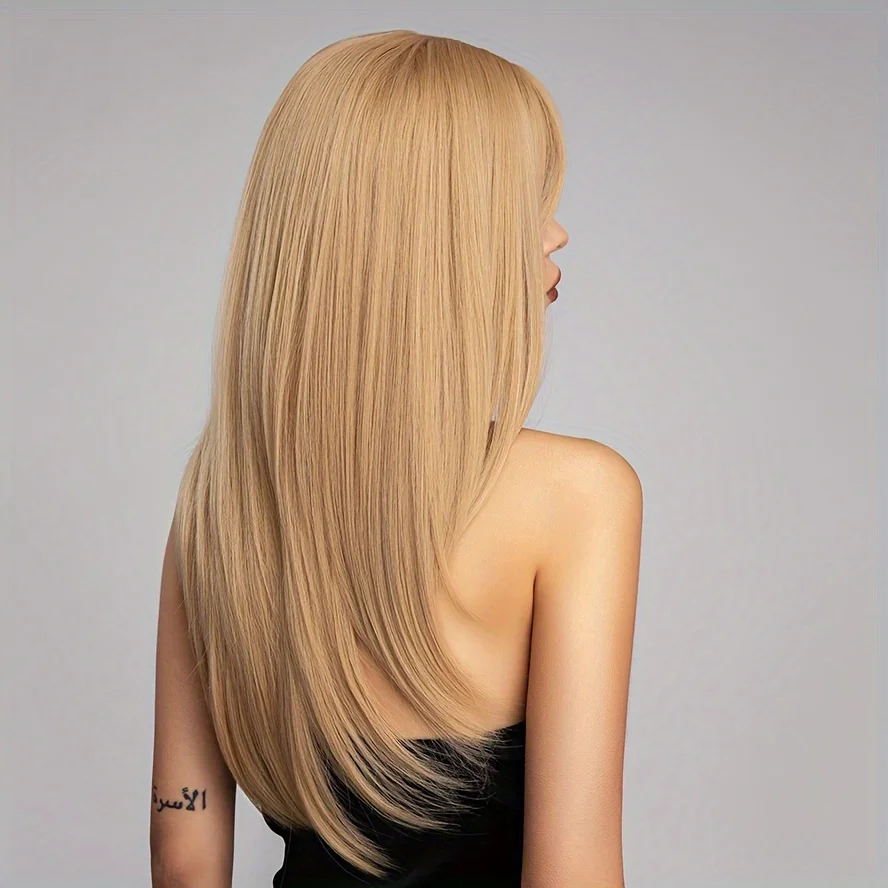 • Long Straight Blonde Wig With Edging Party Role-playing Synthetic Wig For Women