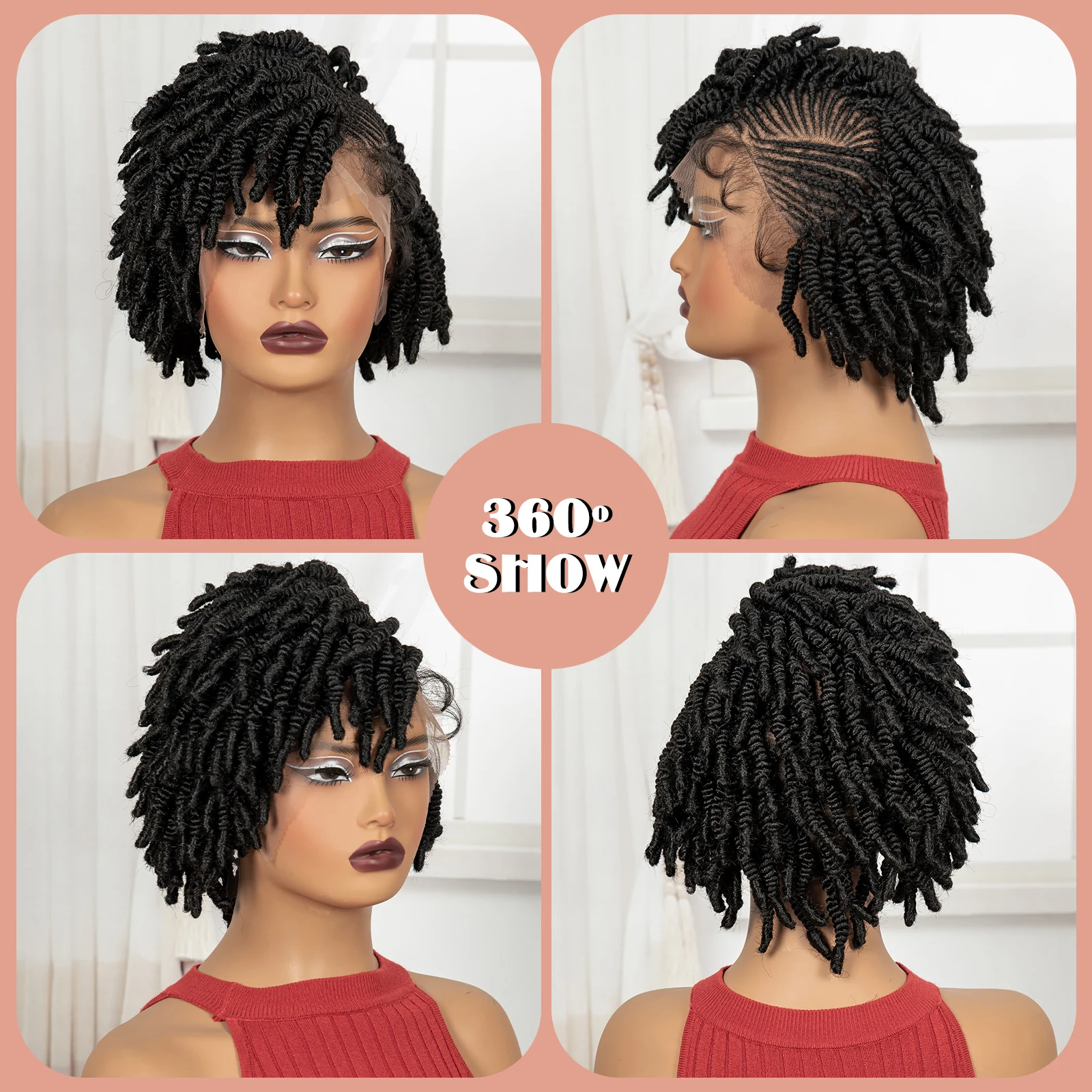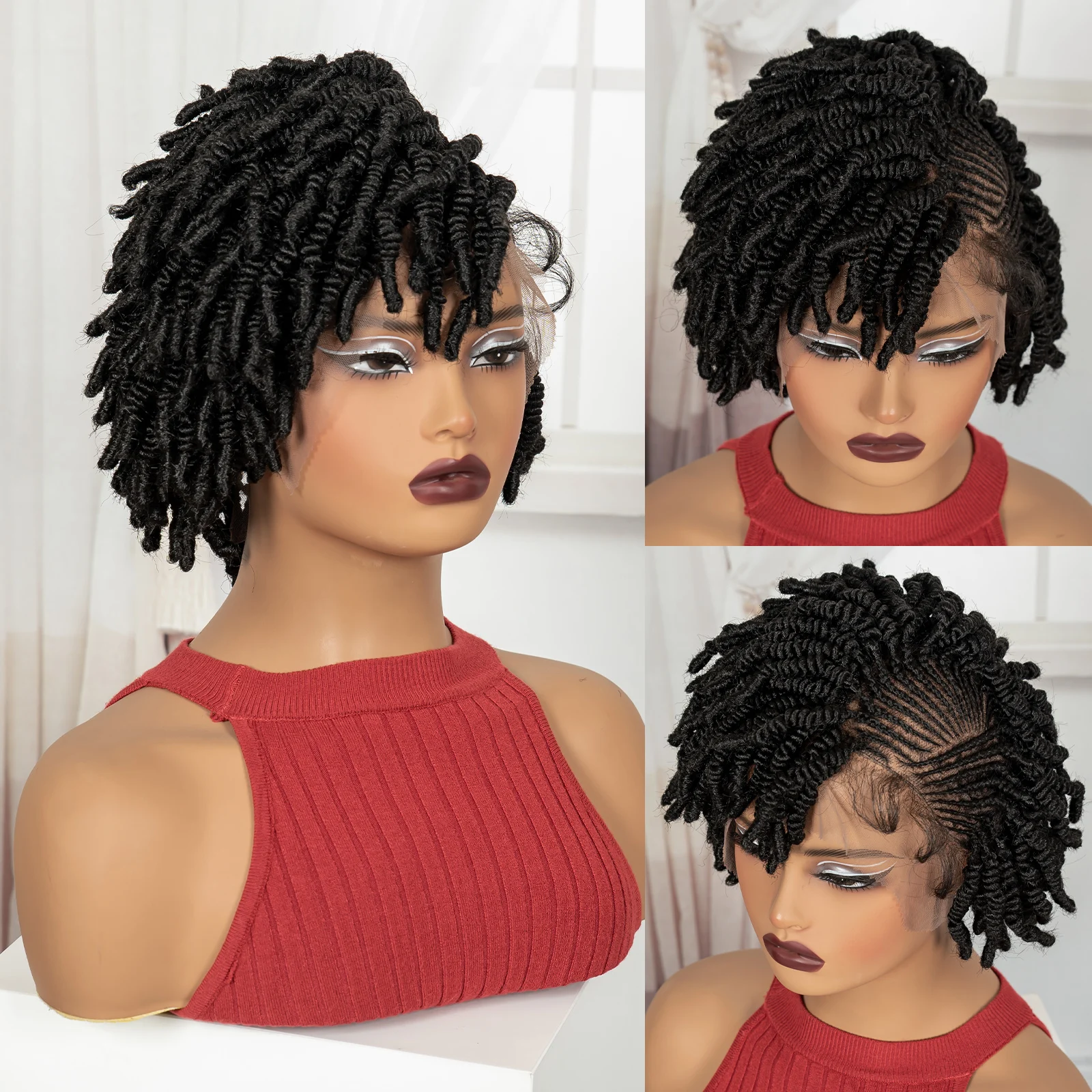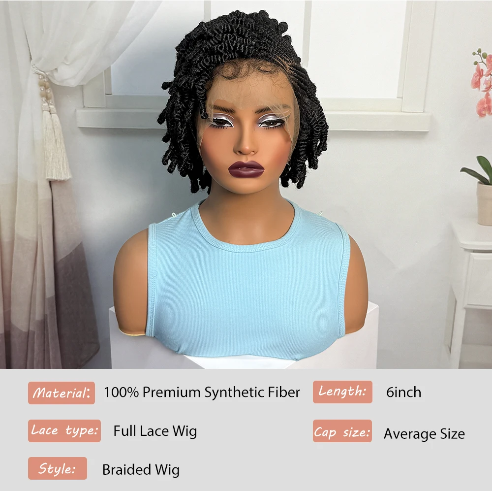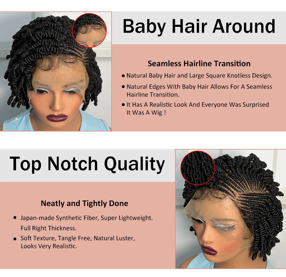 • Short Bantu Braided Wigs Synthetic Full Lace Handmade Cornrow Braided Wigs with Baby Hair