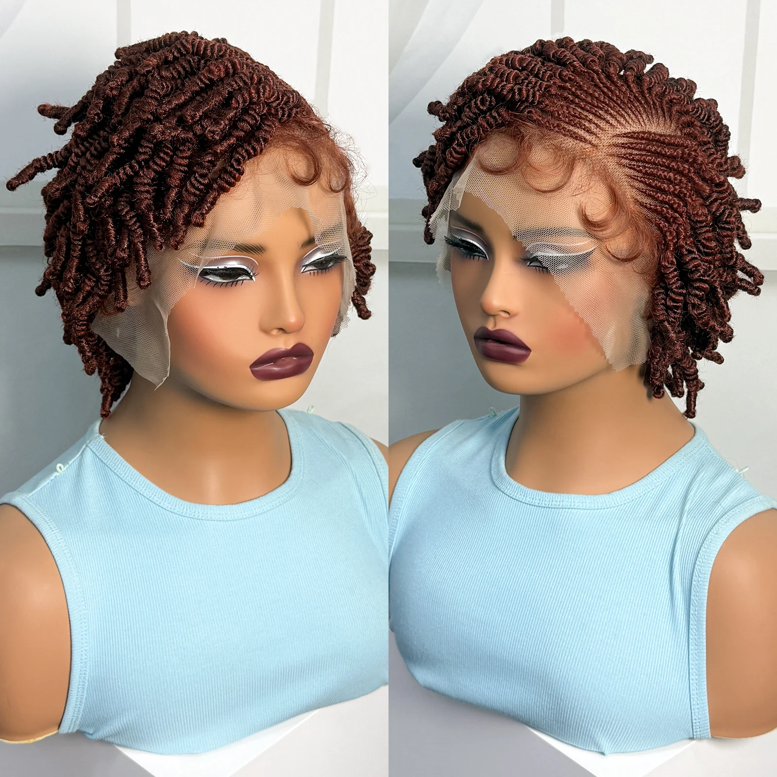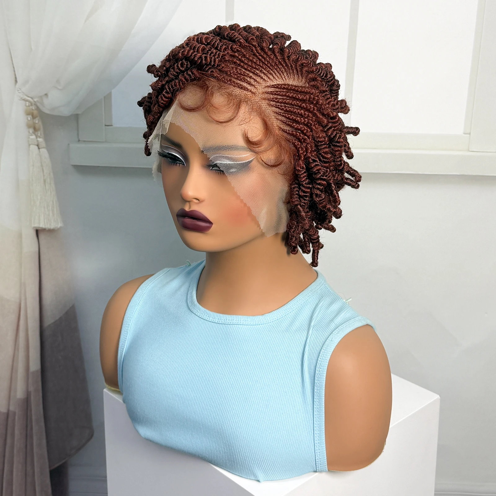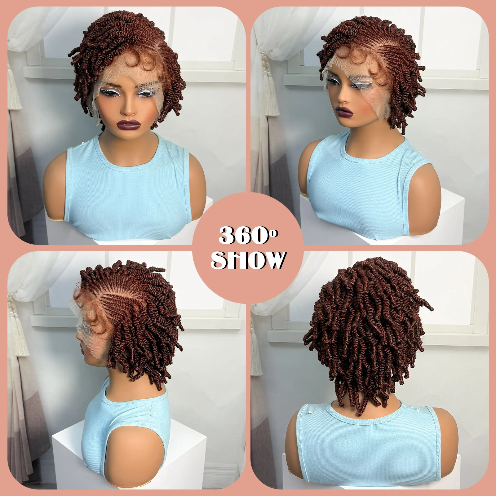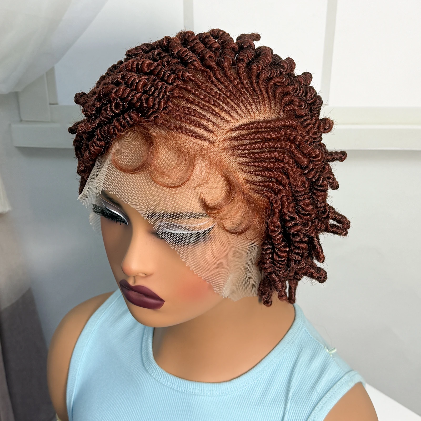 • Short Bantu Braided Wigs Synthetic Full Lace Handmade Cornrow Braided Wigs with Baby Hair