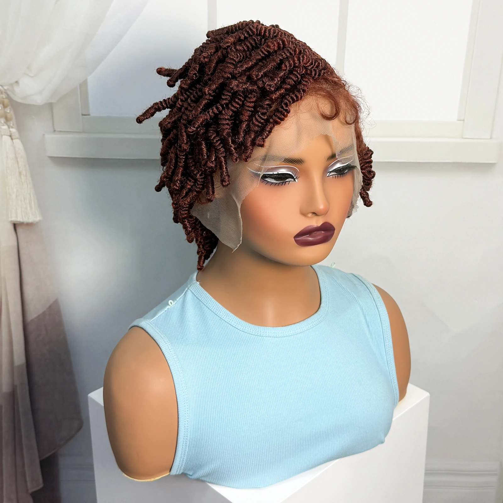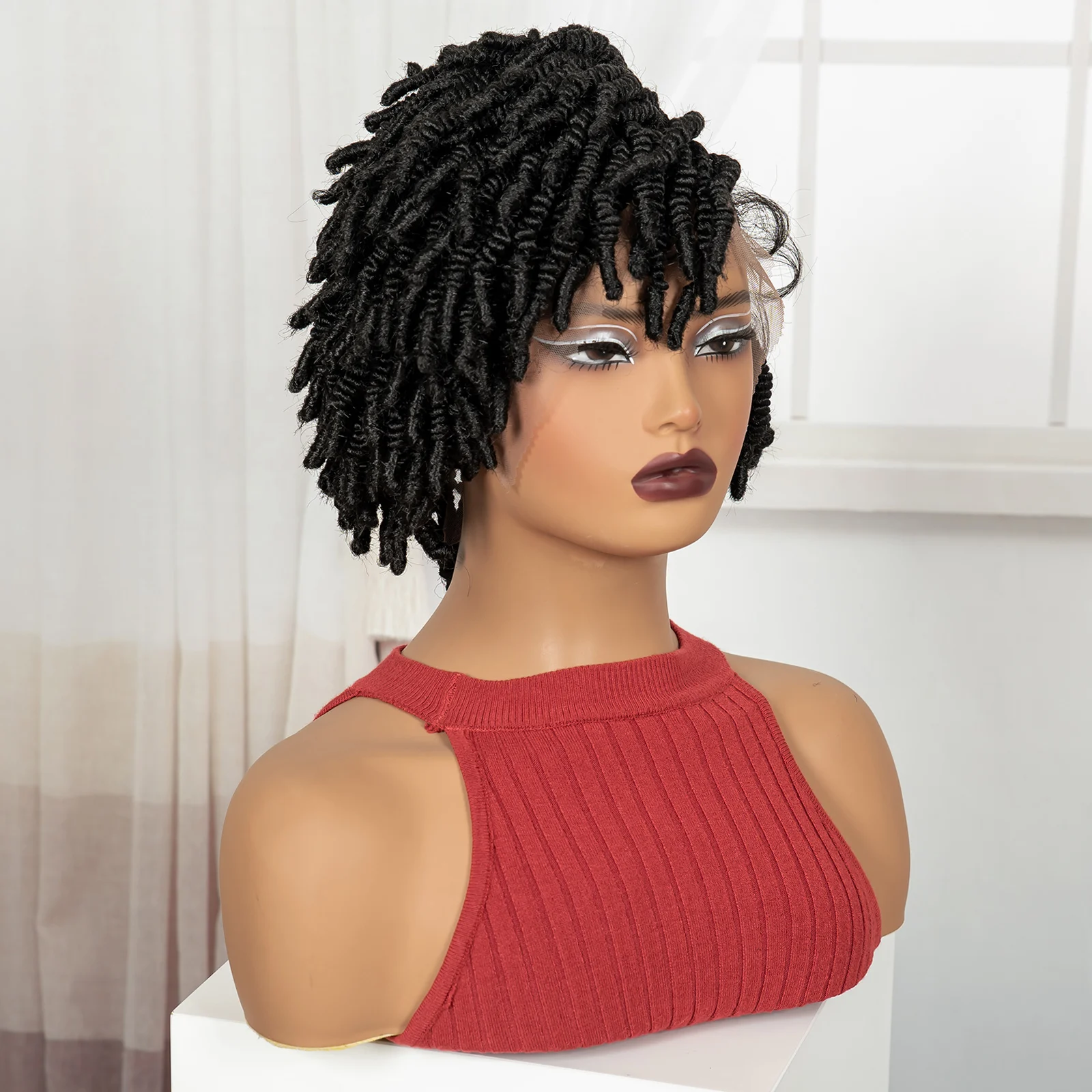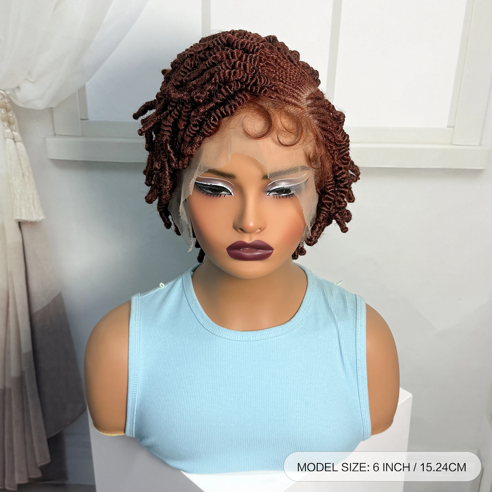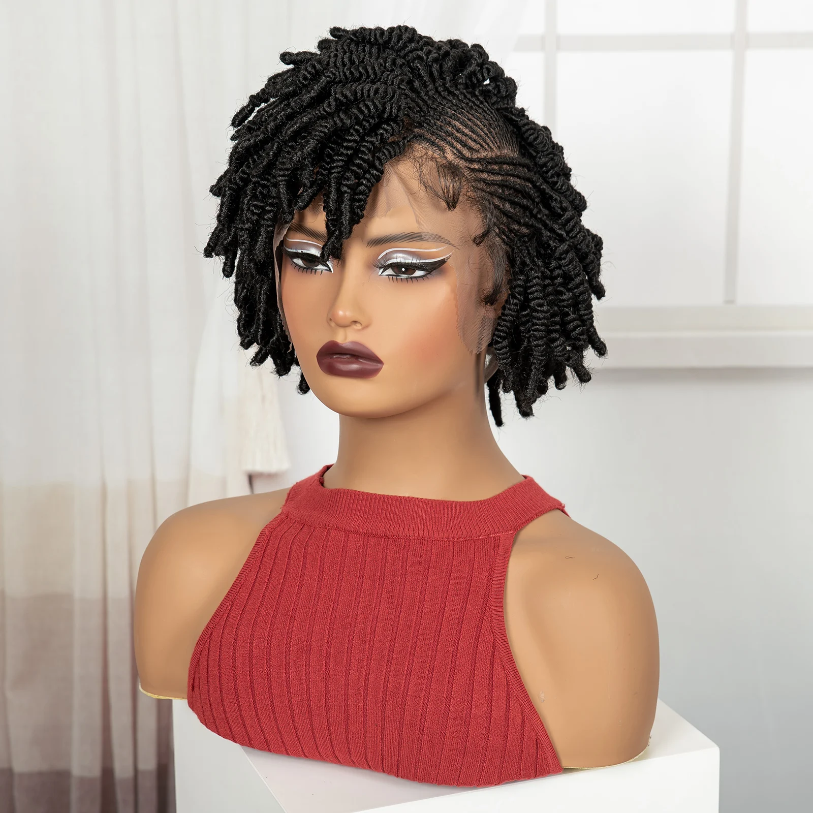 • Short Bantu Braided Wigs Synthetic Full Lace Handmade Cornrow Braided Wigs with Baby Hair