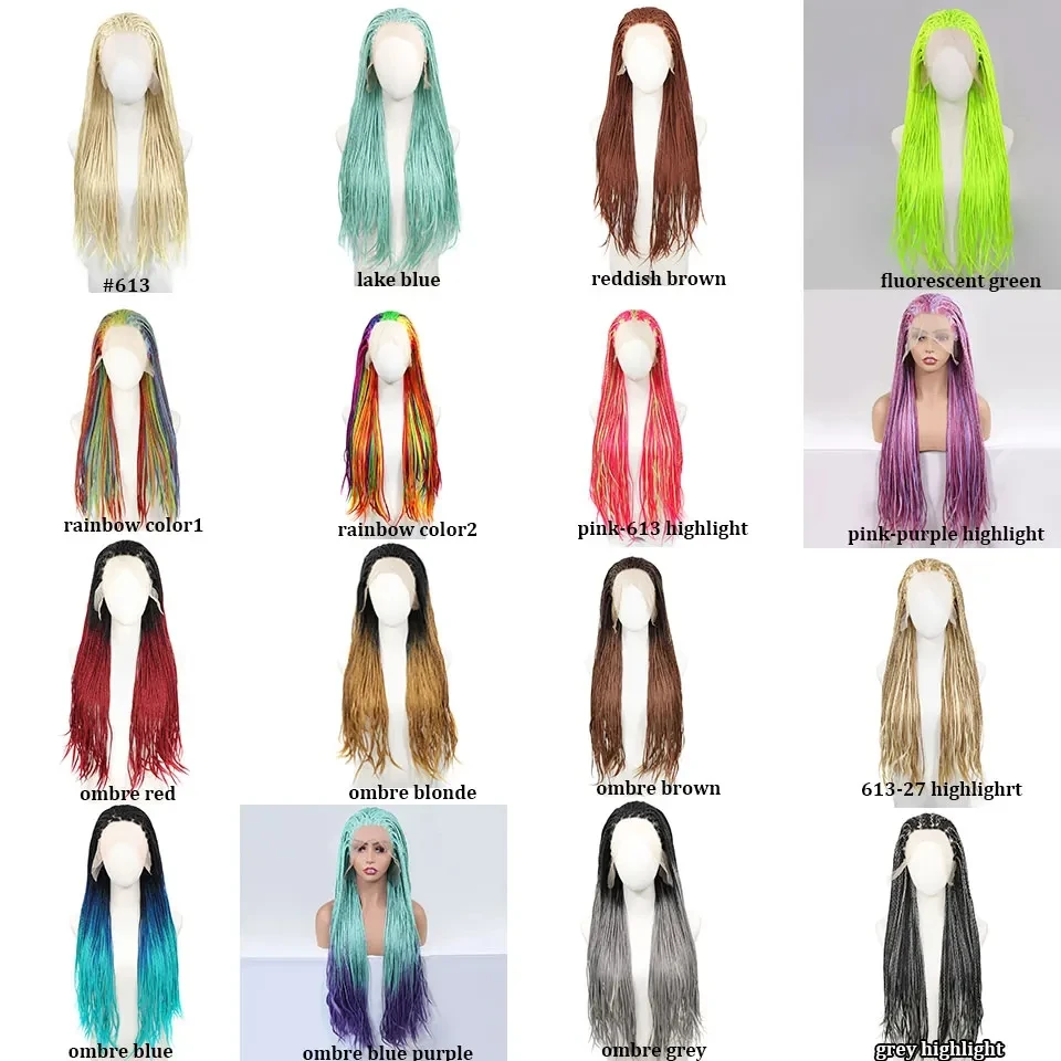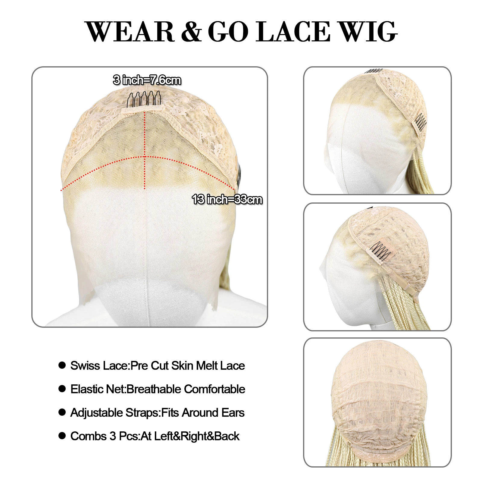 • 613 Blonde Box Braided Wigs Braids 26Inch Long Synthetic Hair 13x3 Lace Front Wig