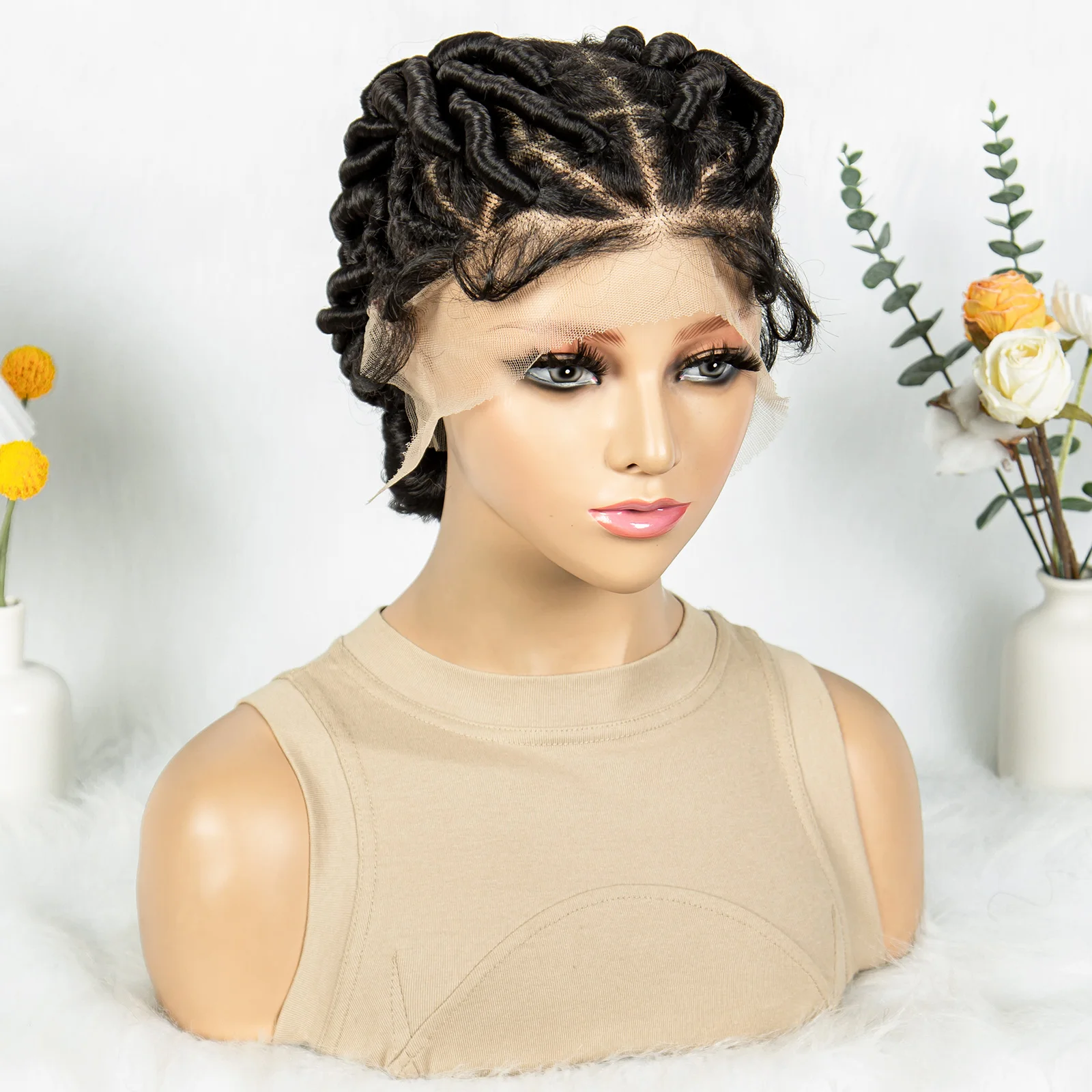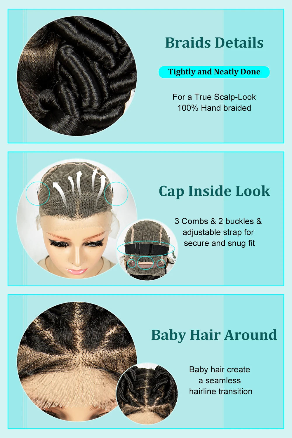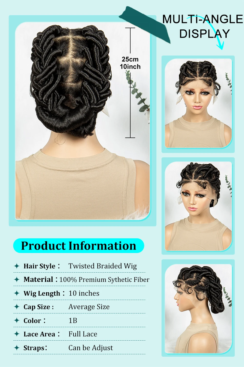 • Transparent Full Lace Synthetic Knotless Braided Wigs Crochet Twisted Wigs