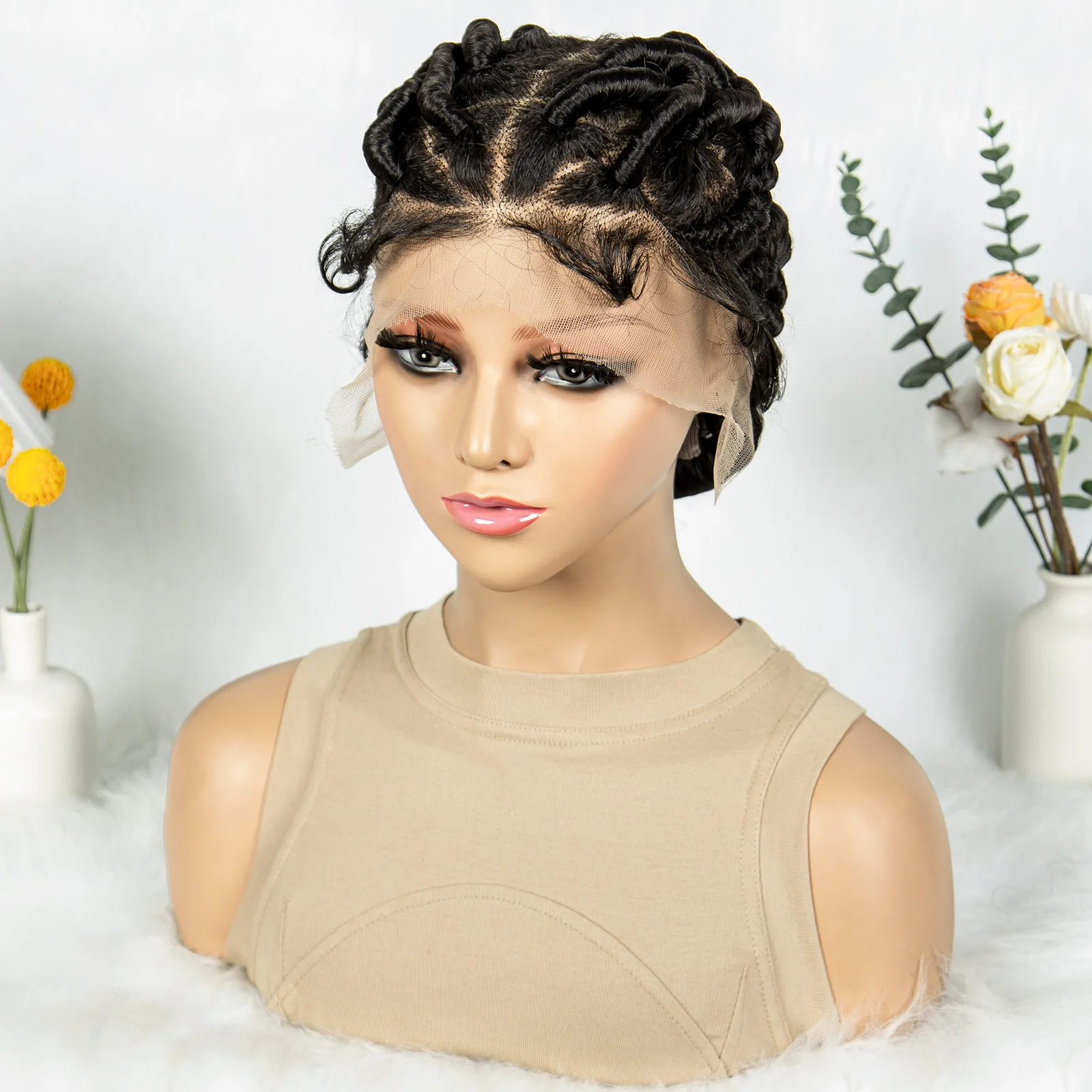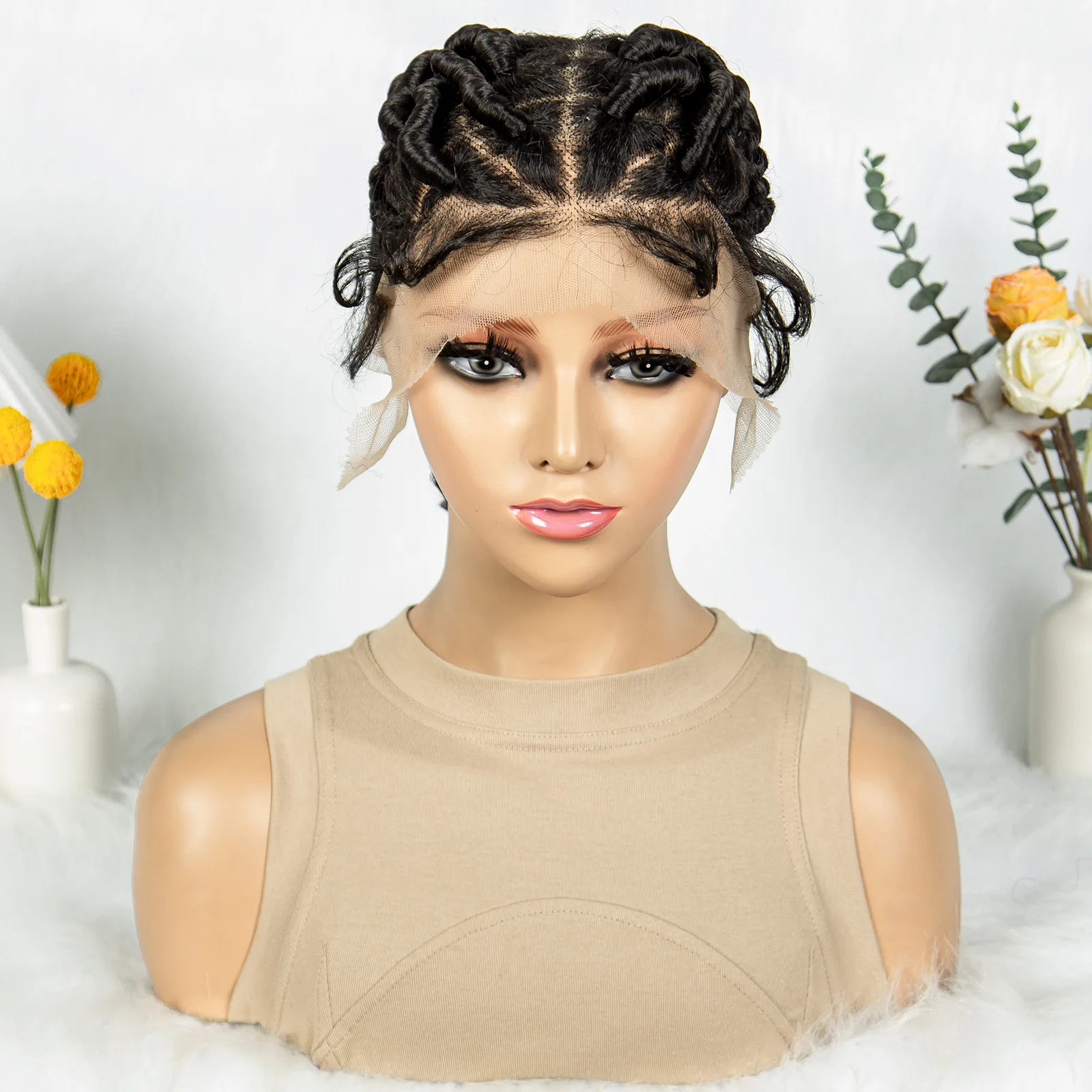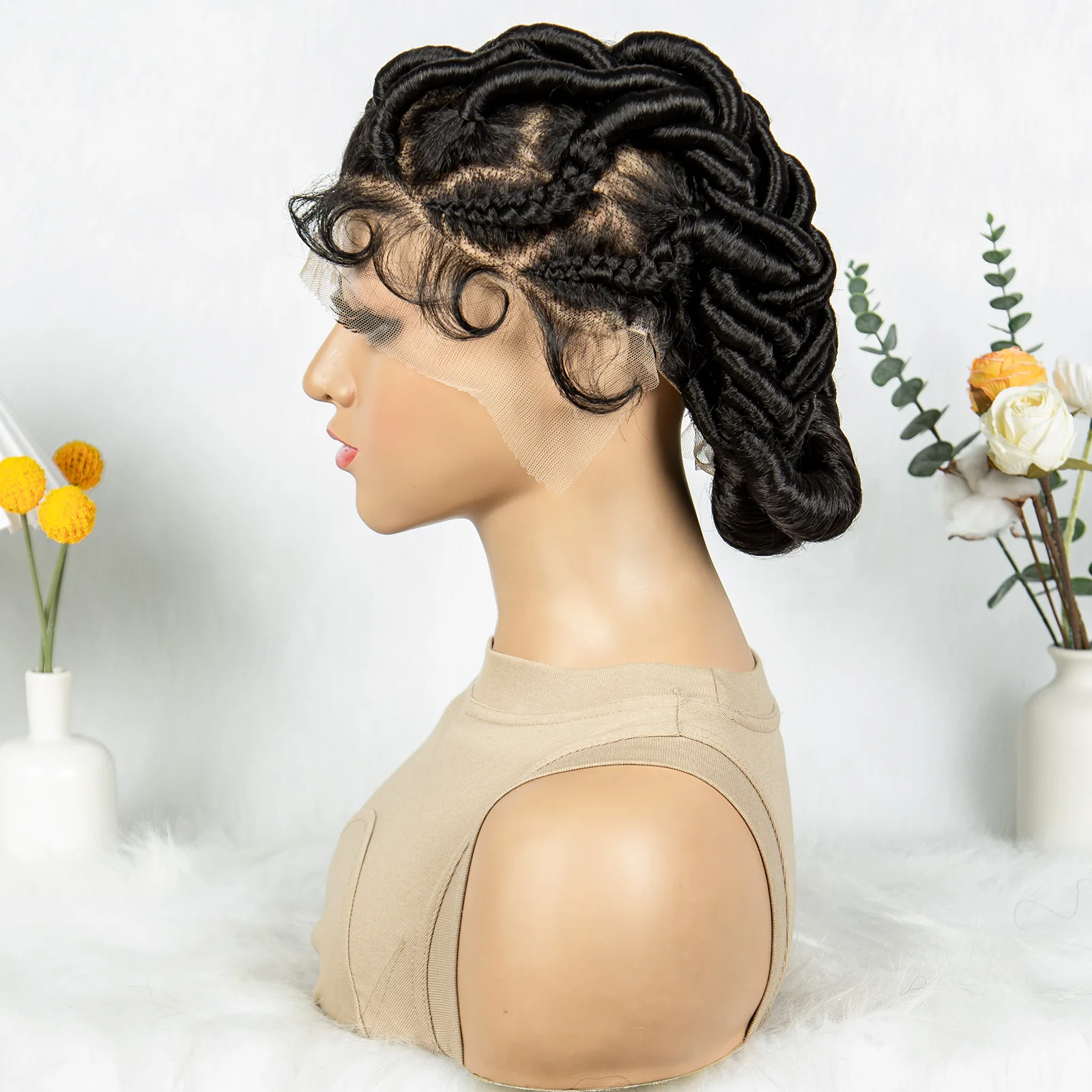 • Transparent Full Lace Synthetic Knotless Braided Wigs Crochet Twisted Wigs