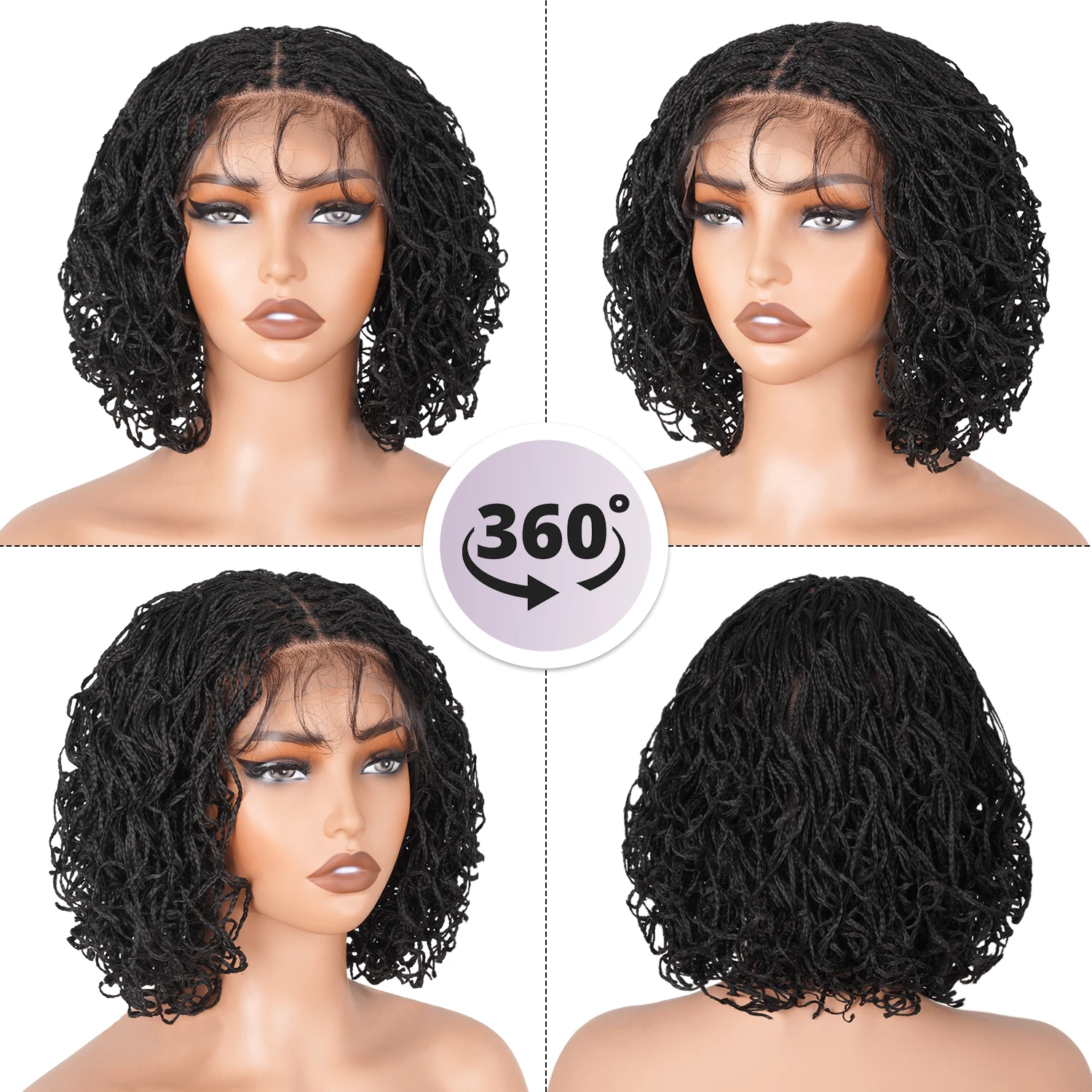 💖【Square parted design】This mini twist lace frontal braided wigs feature classic box braids with precise square partings. Knotless box design free parting allows you to DIY unique hairstyles. Natural black hair color perfectly suits various skin tones