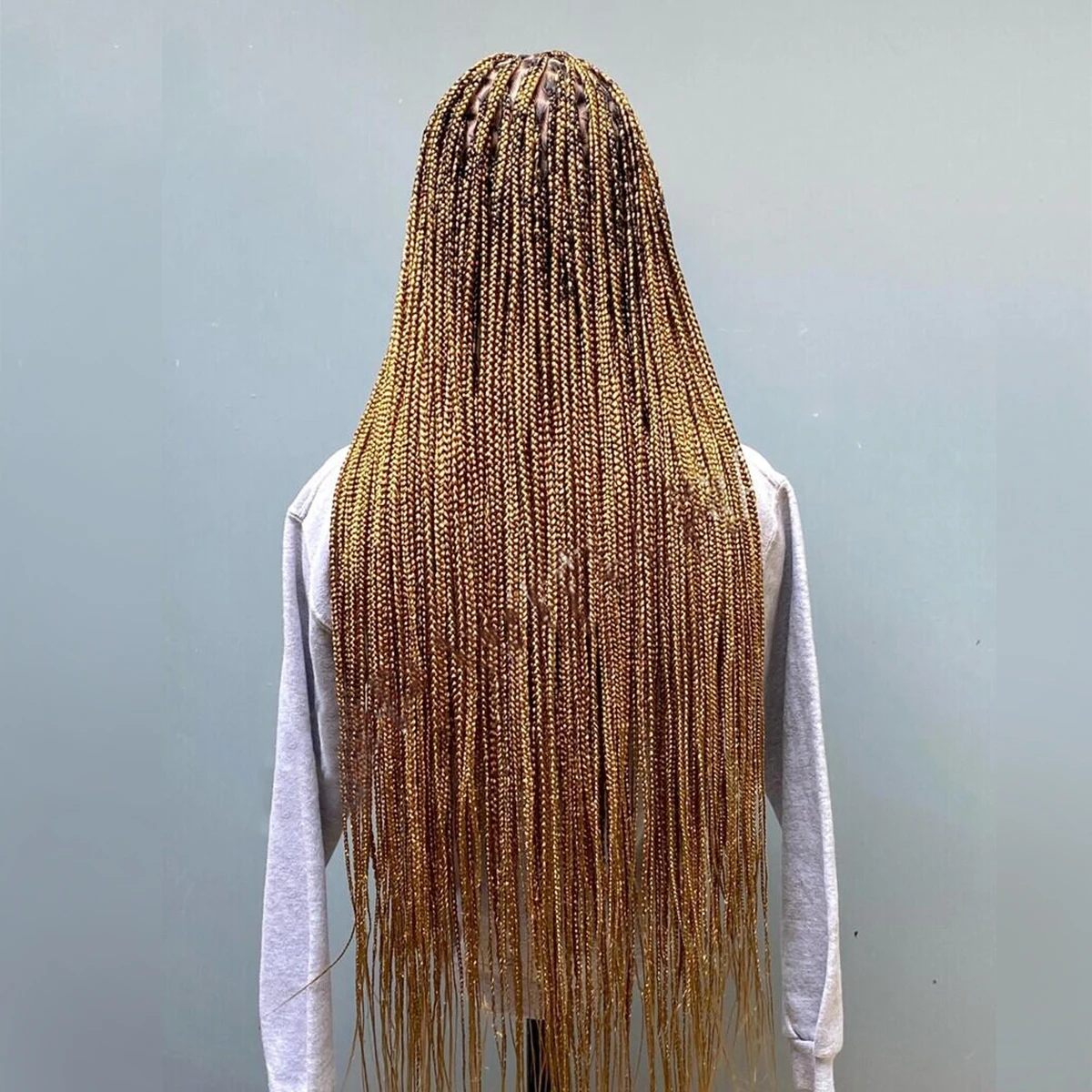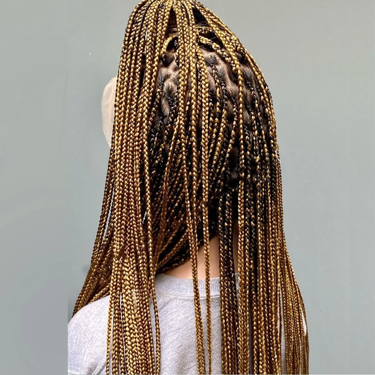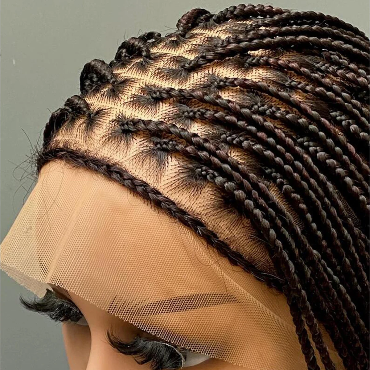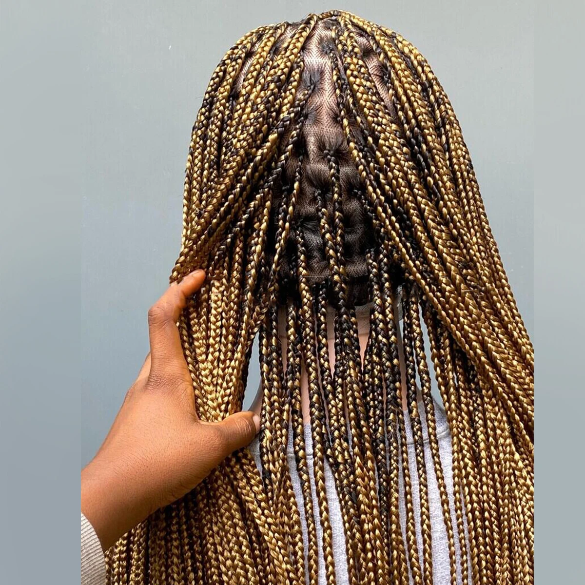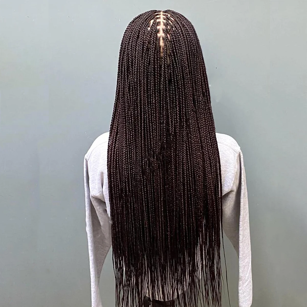 • Glueless Knotless Box Braided Wig on Full Lace with Natural Root Color 1b Customizable braids