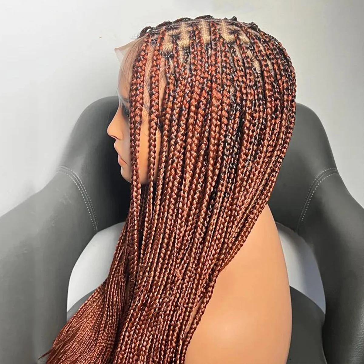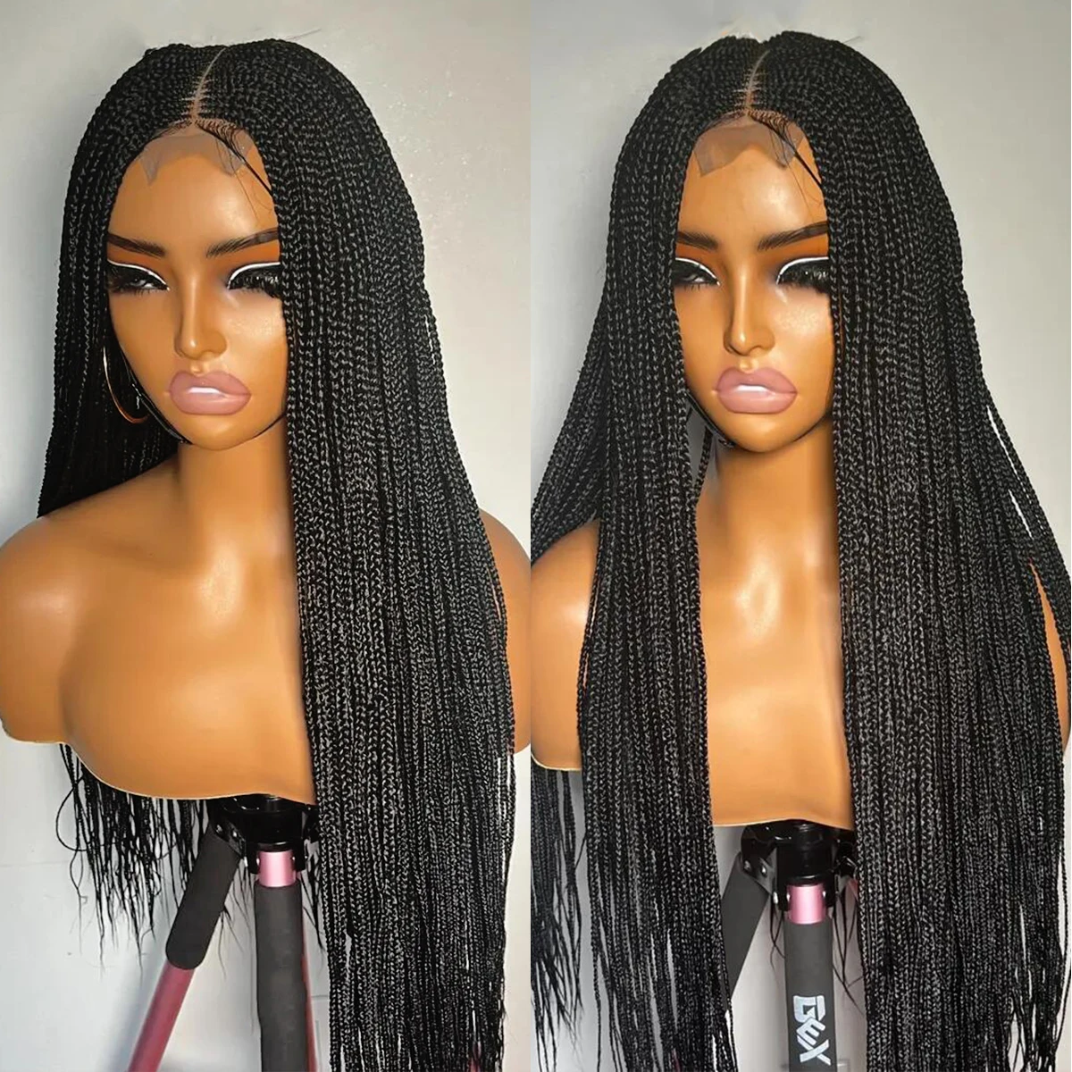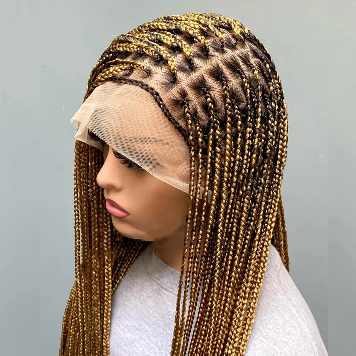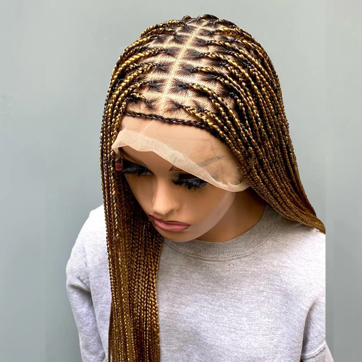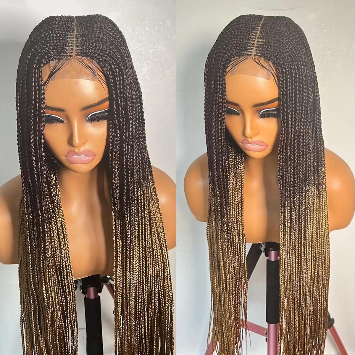 • Glueless Knotless Box Braided Wig on Full Lace with Natural Root Color 1b Customizable braids