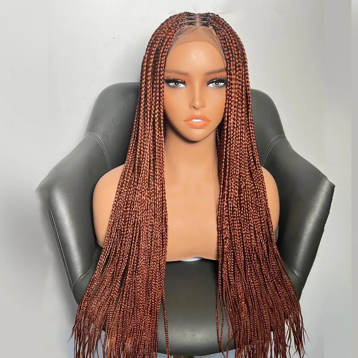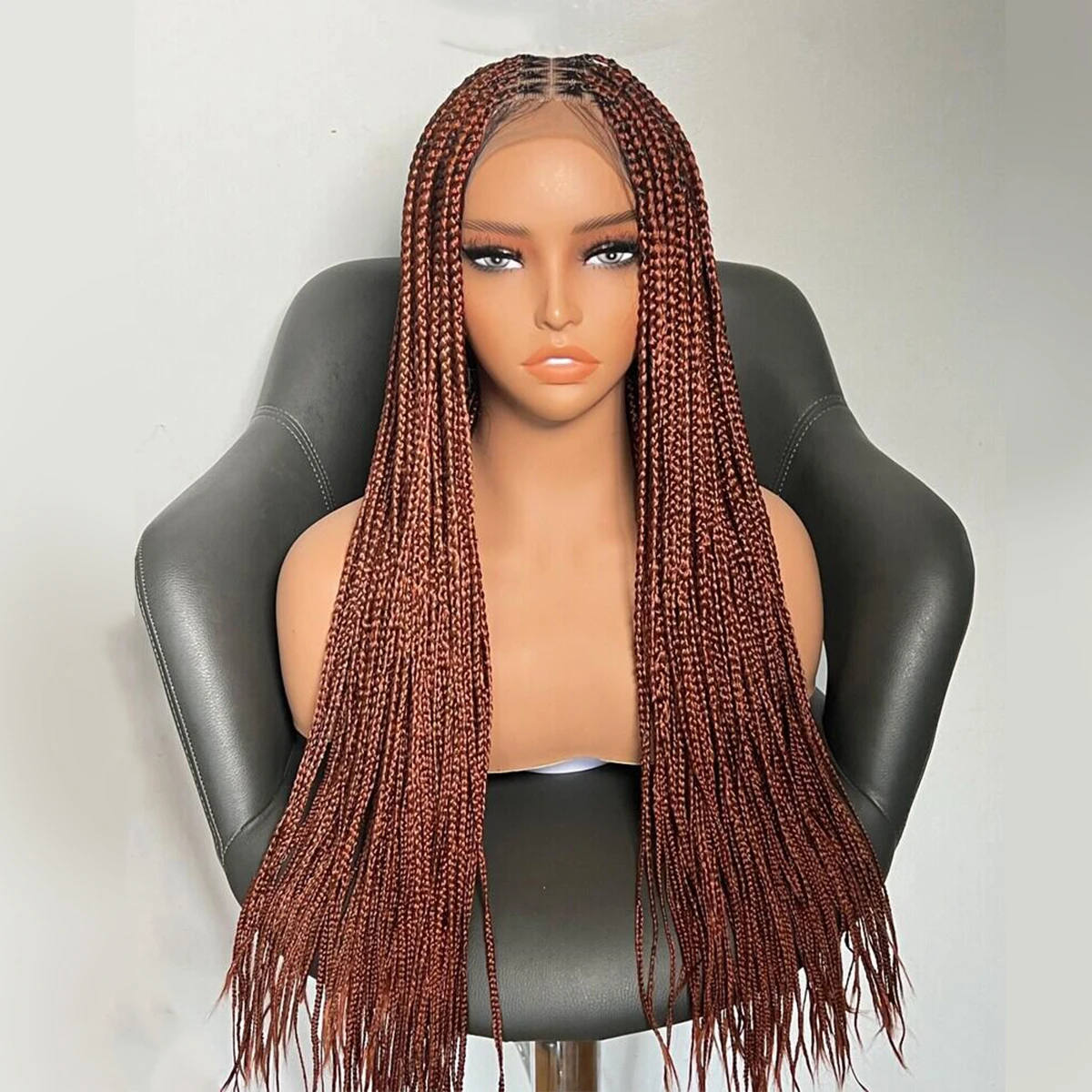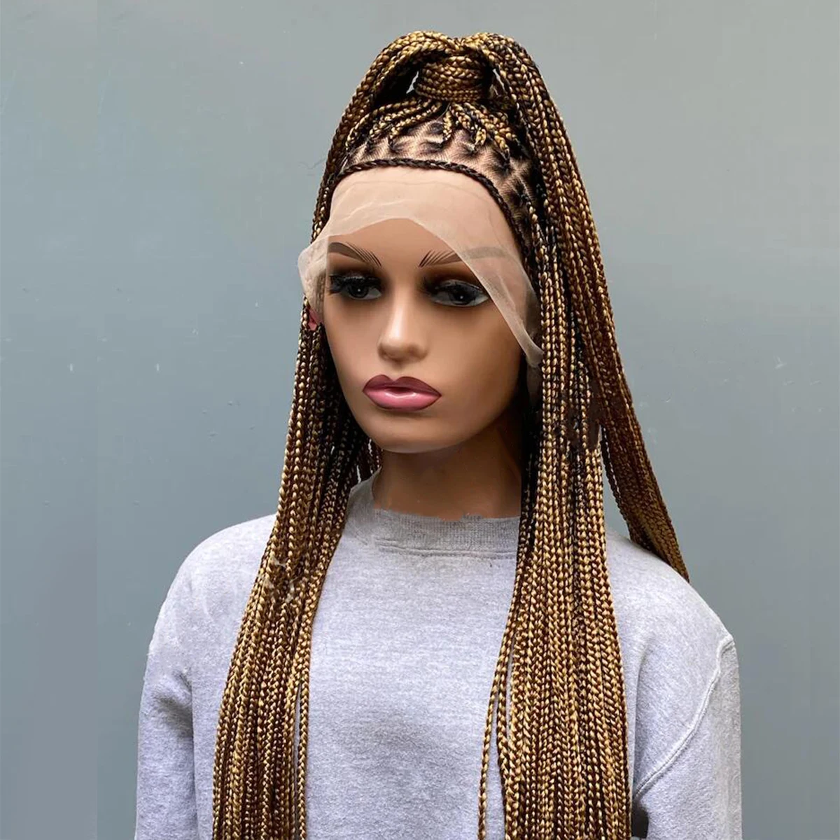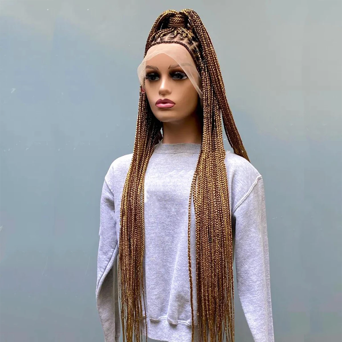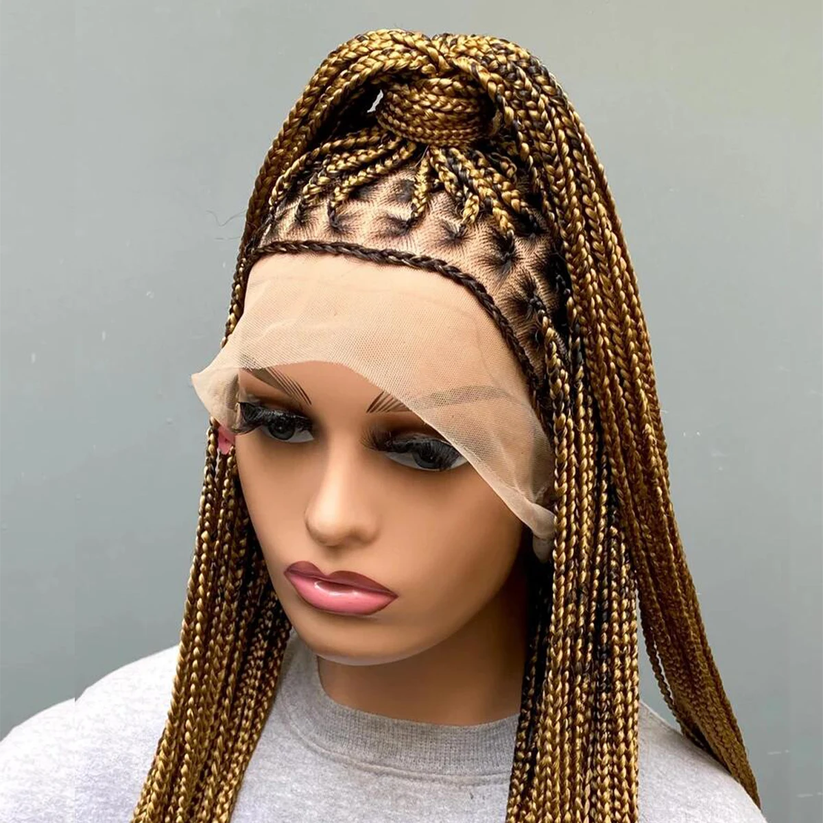 • Glueless Knotless Box Braided Wig on Full Lace with Natural Root Color 1b Customizable braids