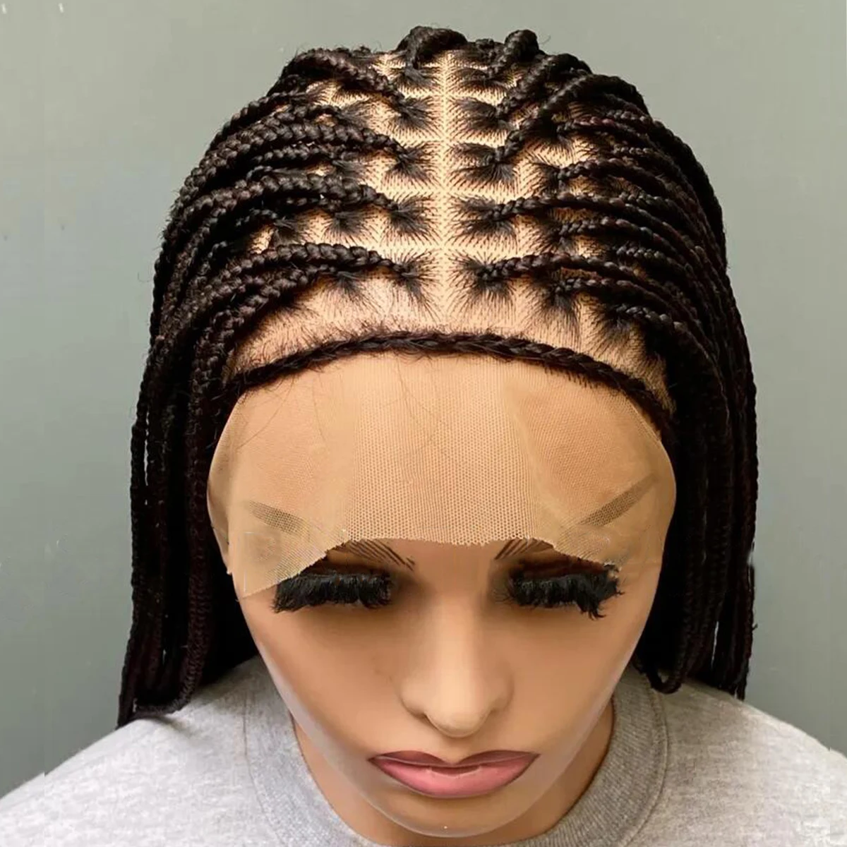 Glueless Knotless Box Braided Wig on Full Lace with Natural Root Color 1b Customizable braids