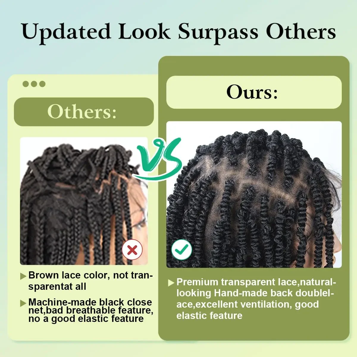 PREMIUM CONSTRUCTION: High-quality synthetic passion twist braids with pre-twisted texture, crafted on a full lace base for natural-looking styling versatility